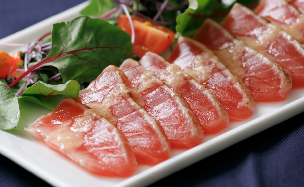 - 炙りマグロのカルパッチョ 土佐の生姜ドレッシング