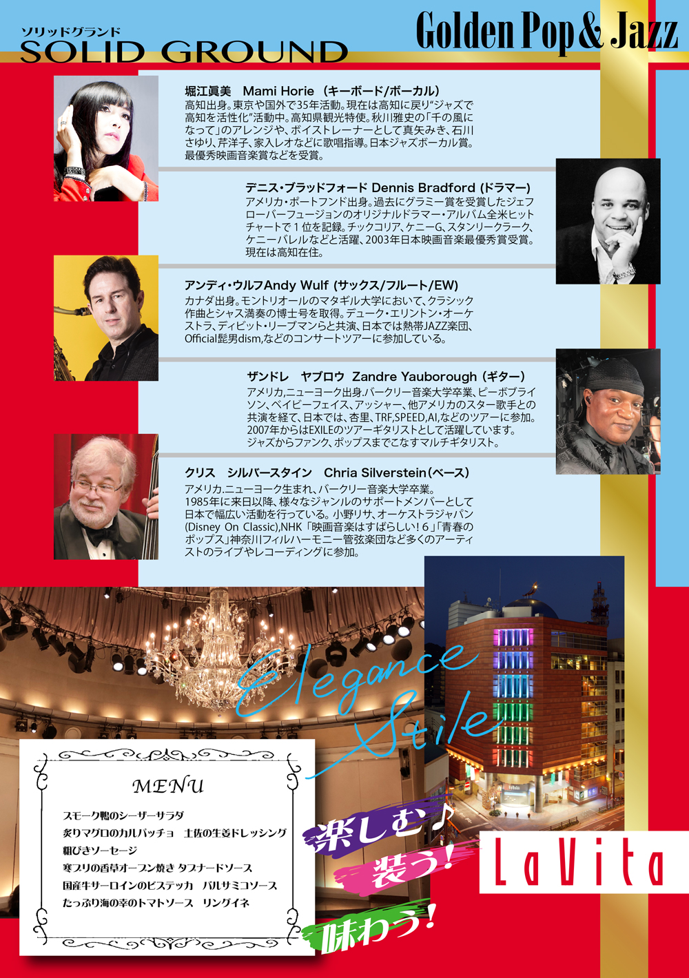 開場/開演開場17:30/ディナー18:00~/ライブ18:45~21:00